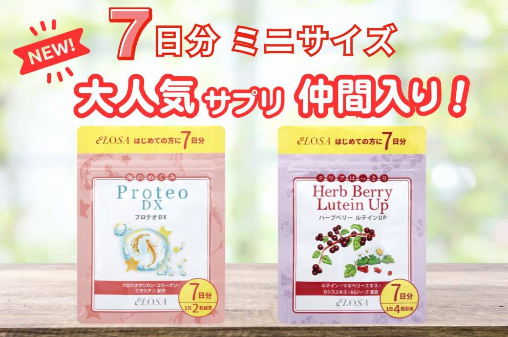 まず試してみたい、続けられるか不安…そんな声に寄り添った7日間ミニサイズサプリシリーズに、LOSA人気サプリ2種類が仲間入り!